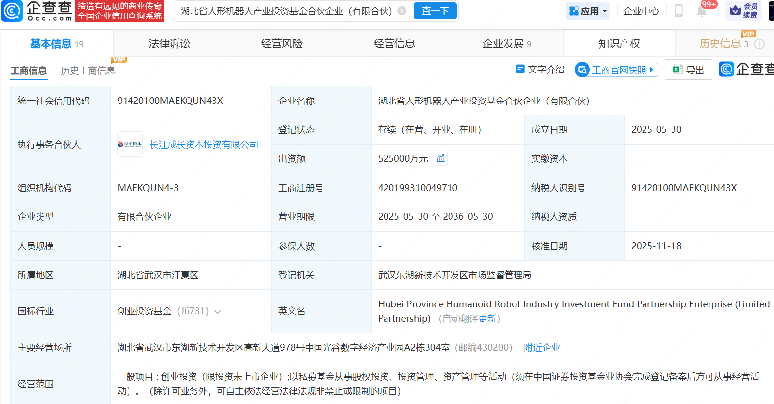 近日,湖北省人形机器人产业投资基金合伙企业(有限合伙)发生工商变更,新增黄石市产业发展基金合伙企业(有限合伙)为合伙人,同时,出资额由50亿人民币增至52.5亿人民币。企查查信息显示,该企业成立于2025年5月,经营范围为创业投资,以私募基金从事股权投资、投资管理、资产管理等活动,由武汉光谷产业投资有限公司等共同出资。